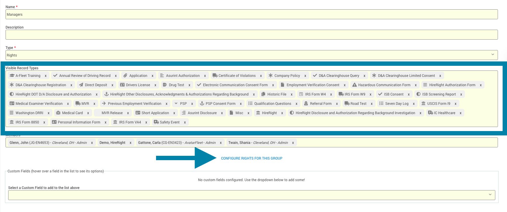 Configure Rights for This Group to define what actions members of this group can perform within DriverHub.