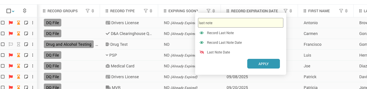 Once enabled, you can sort by Last Note Date like any other column. This gives you a fast, clear way to see which records have recent notes or require attention.