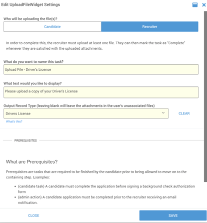 Set who will be uploading the file (either Candidate or Recruiter).