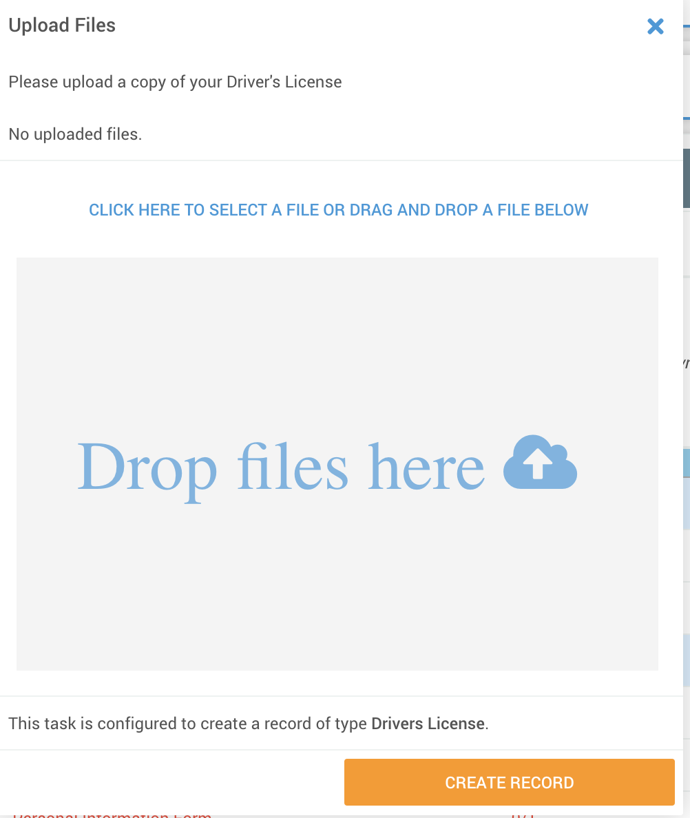 When the workflow runs, any file uploaded through this task will automatically attach to the selected record type in the candidate or team member’s profile.![]()