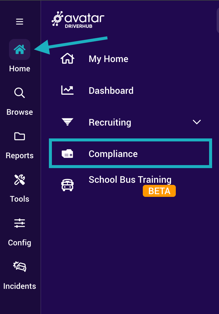 - Open your Compliance Dashboard by navigating to Home > Compliance.