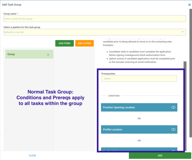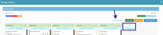 - The Recruiter View: Tasks and groups that don’t apply to a candidate will not appear in their workflow. If a conditional task does appear in a workflow, there will be an icon to the left that you can click to see what condition was met.