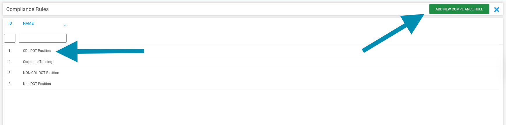 Click the job you want to view or edit, or click Add New Compliance Rule in the upper right corner.