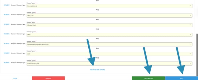 To add a new required record type, click Add Another Record beneath the list of existing records.