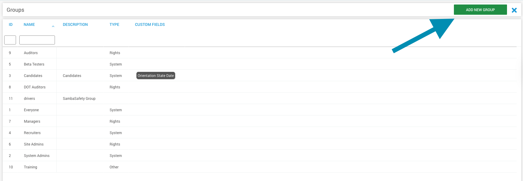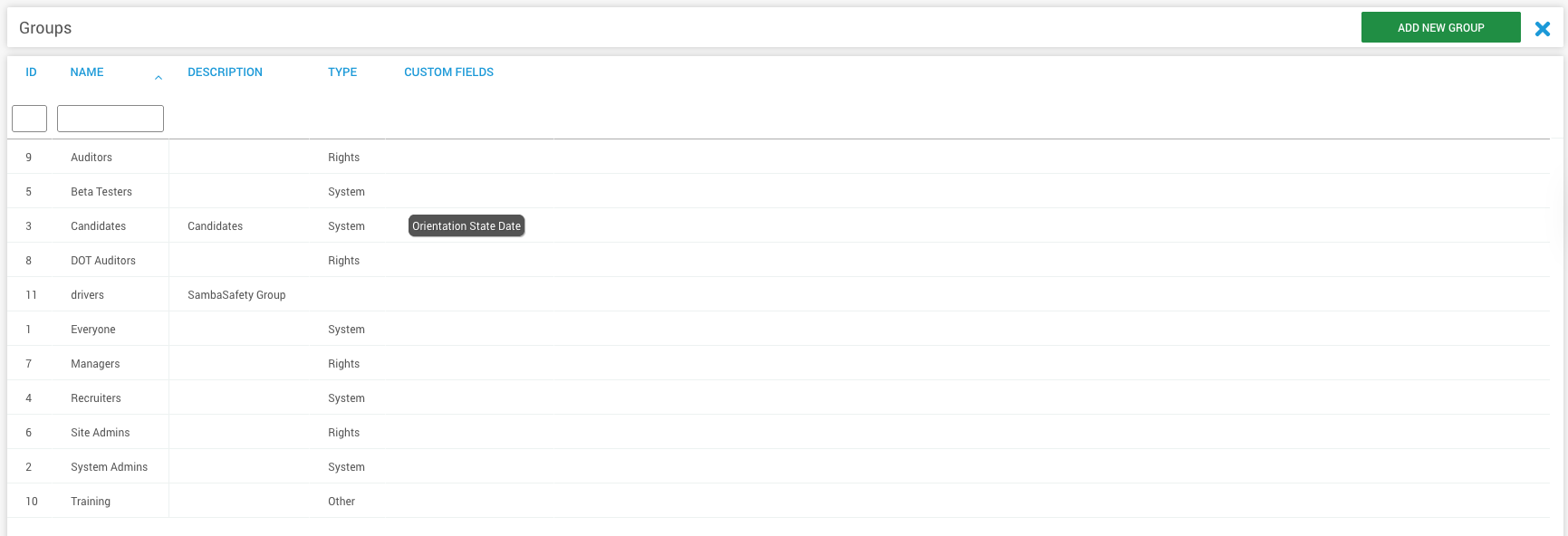You will see a list of all existing groups, their descriptions, group types, and any custom fields added to the group.