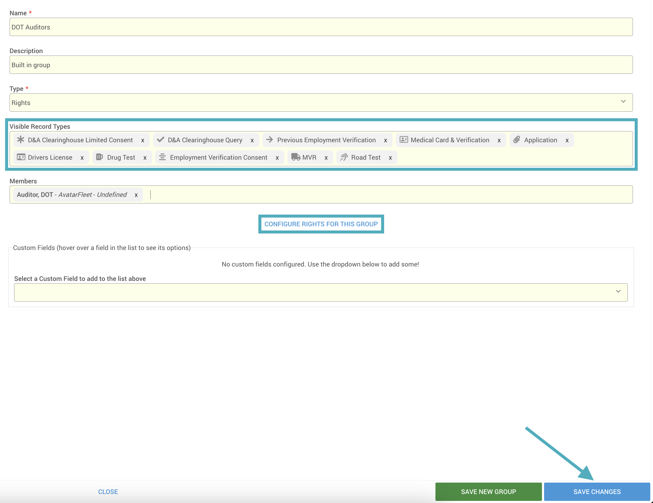 - Set Rights: Configure the specific actions the group can take by choosing from the list of rights available in the system. At a minimum, we recommend adding the following rights: