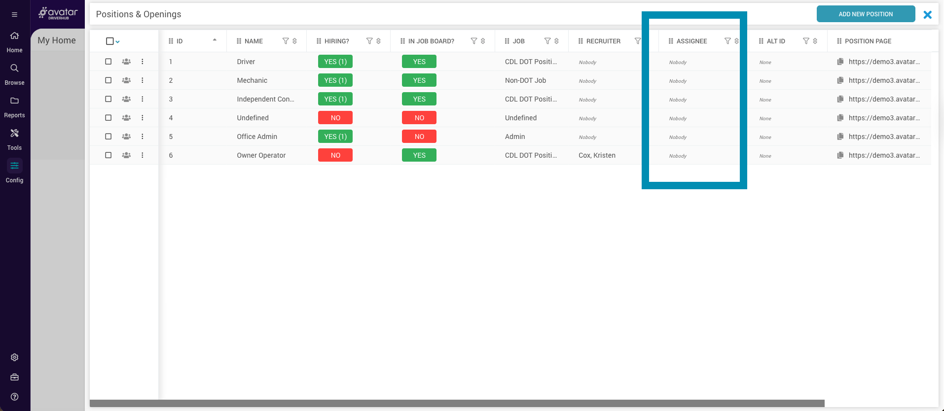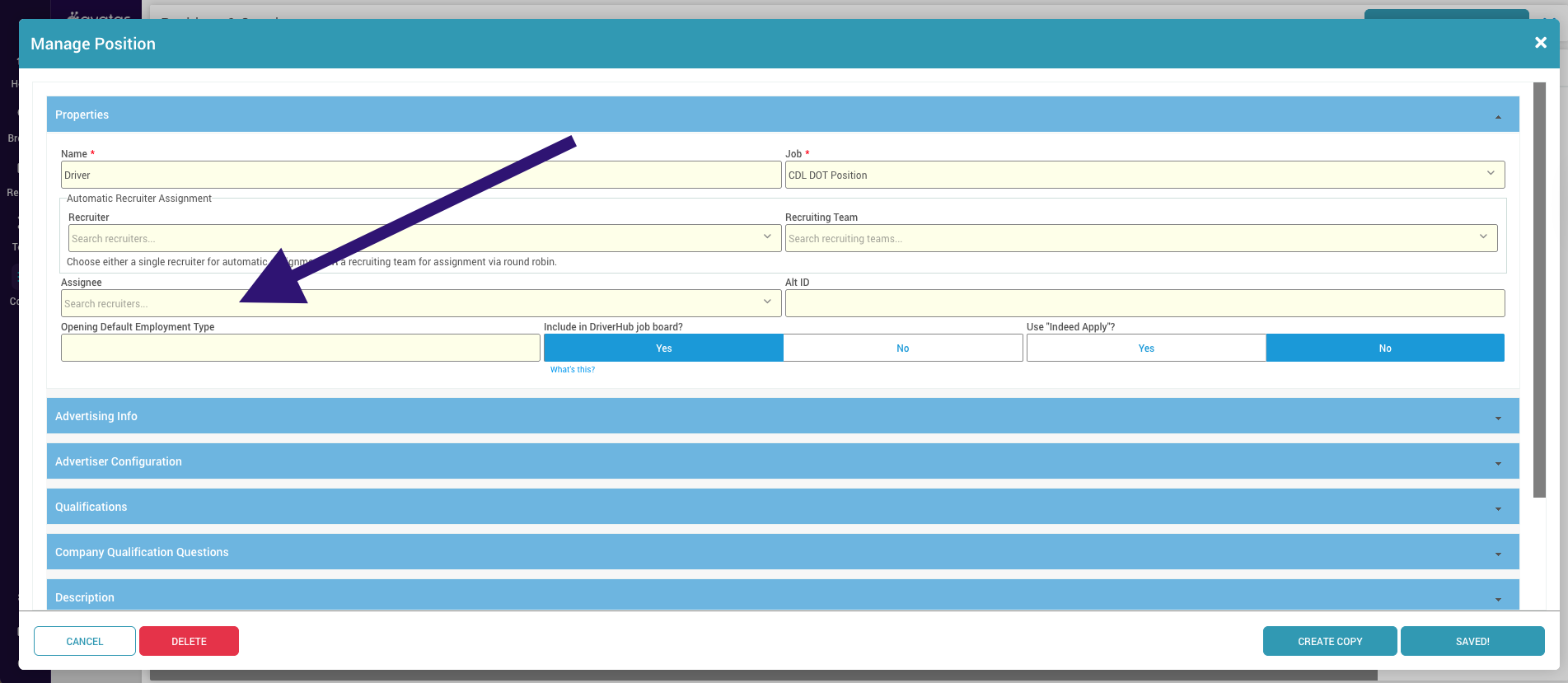 From Navigation Toolbar > Config> Recruit >Positions and Openings:![]()