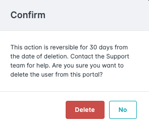 Once deleted, the user is fully removed from your portal and no longer counts toward your total user pool.
