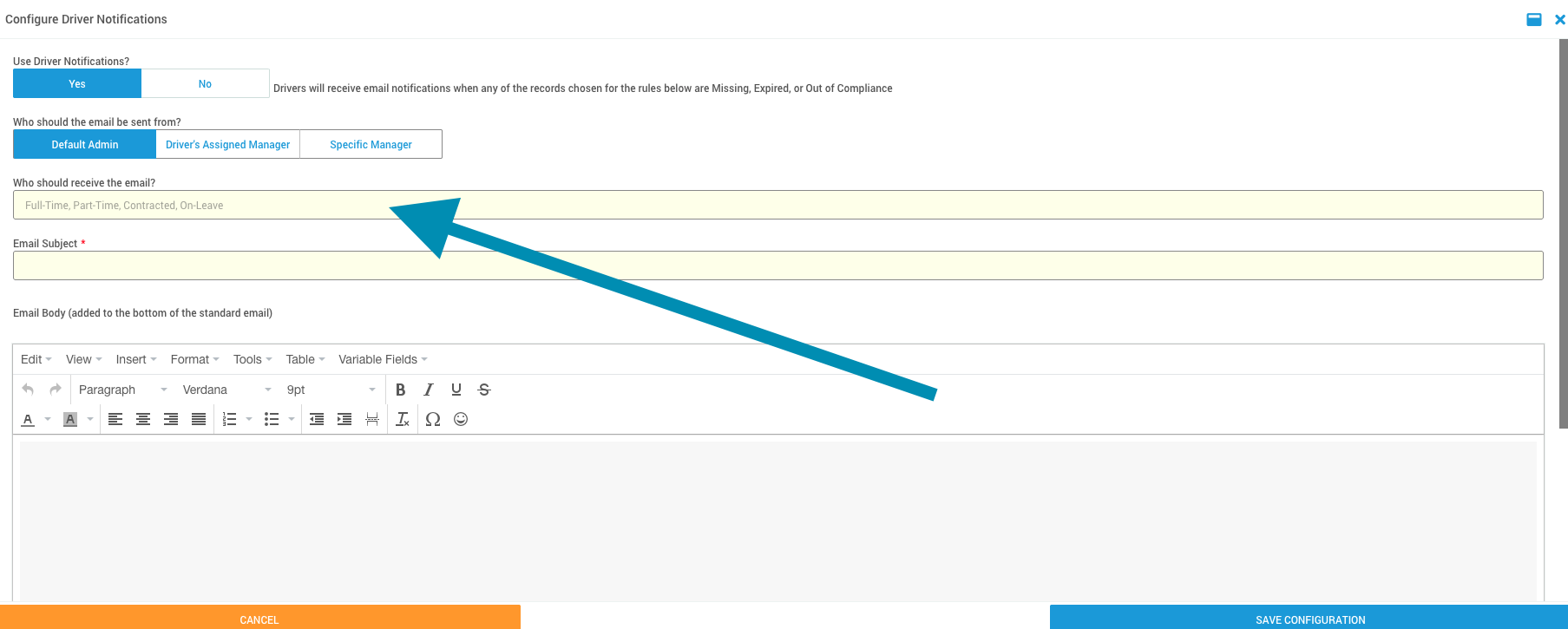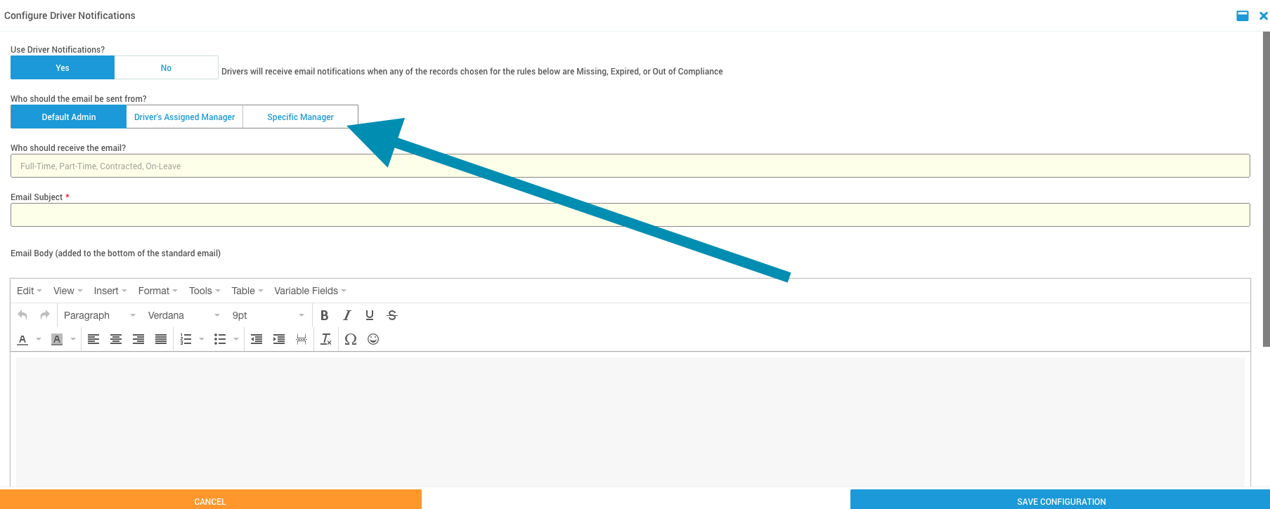 You can select Default Admin, Driver’s Assigned Manager, or Specific Manager.![]()