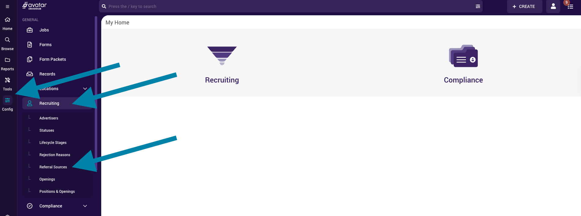 Select Recruiting, then click Referral Sources.
