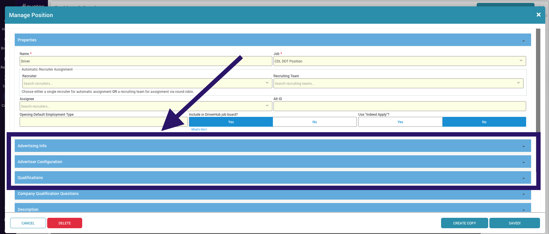 Use the Advertiser Name field to set a custom advertised title for the position that differs from its internal name in DriverHub.