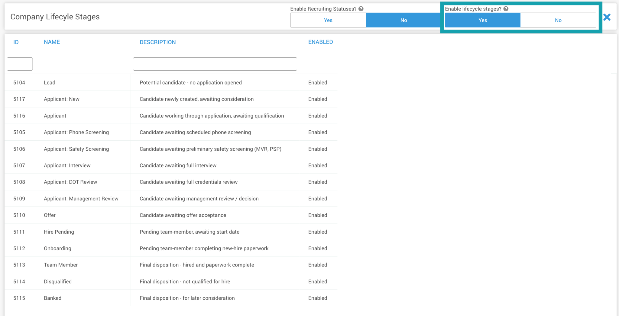 Lifecycle Stages help you sort and track candidates based on where they are in your specific onboarding process. This guide covers how to enable, edit, view, and manage these stages within the DriverHub system.