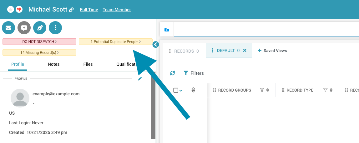 The duplicate badge appears when DriverHub detects matching information such as email address, employee number, license number and state, or Social Security number.