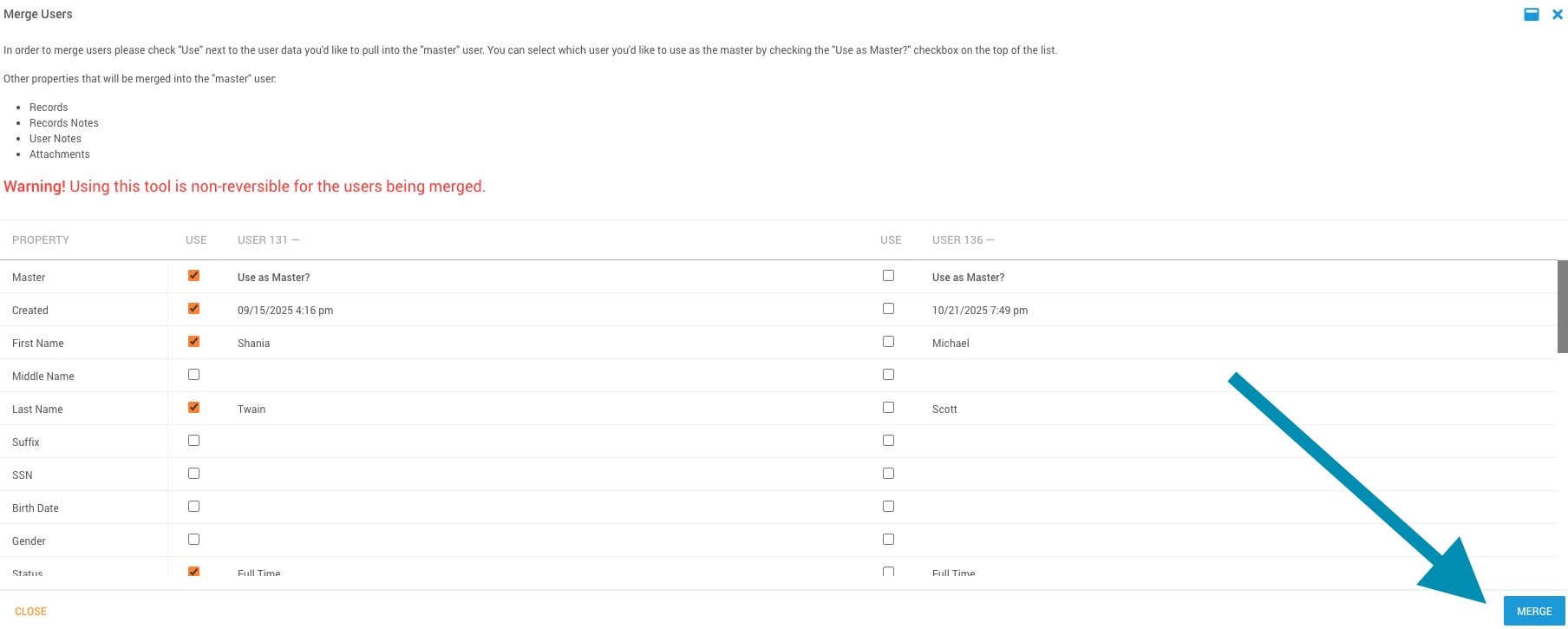 In the left-hand navigation panel, hover over Tools and click Merge Users.