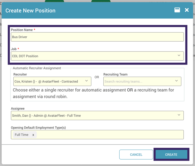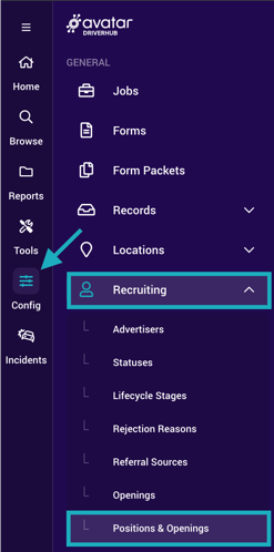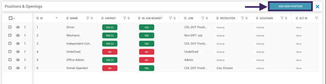 - Position: A general role that employees apply for (e.g., "Long Haul Driver"). Positions are the "parent" category used to create multiple Openings.