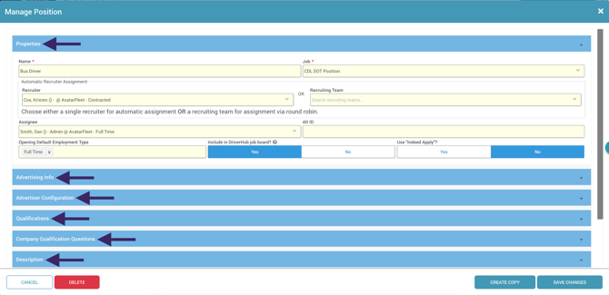 - Qualifications (optional): Set up specific license class or endorsement requirements, experience requirements, or other requirements as needed.