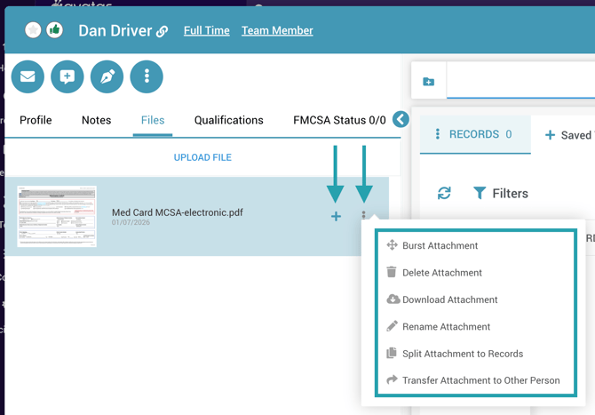 Create a new record or update an existing one using the plus sign next to a file.