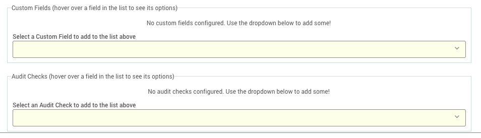 Add any Custom Fields or Audit Checks you want to include. These appear in the Record Details area beneath the Record Info section.