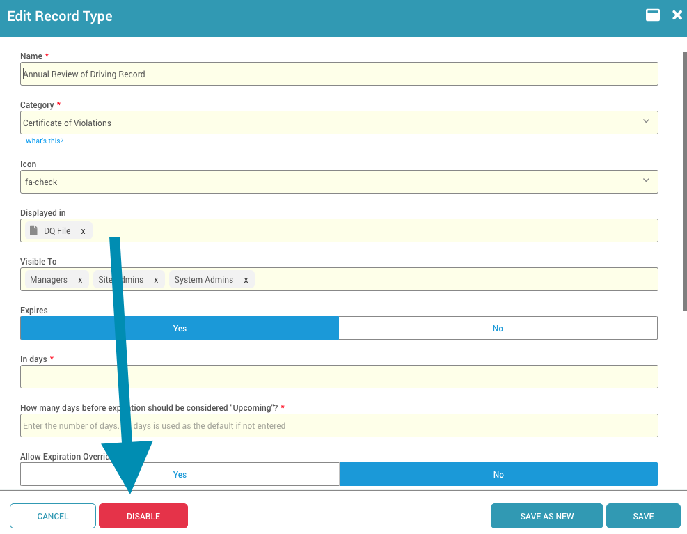 Disabling a Record Type