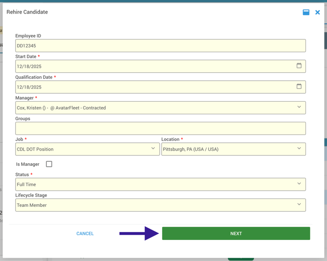 - Feature Activation: If you do not see the Rehire prompt when approving a former driver, this feature may not be enabled for your account. Please contact your Client Success Manager to have it turned on.
