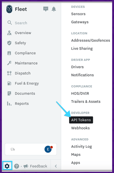 How to create an API Token to connect your Samsara account to DriverHub.