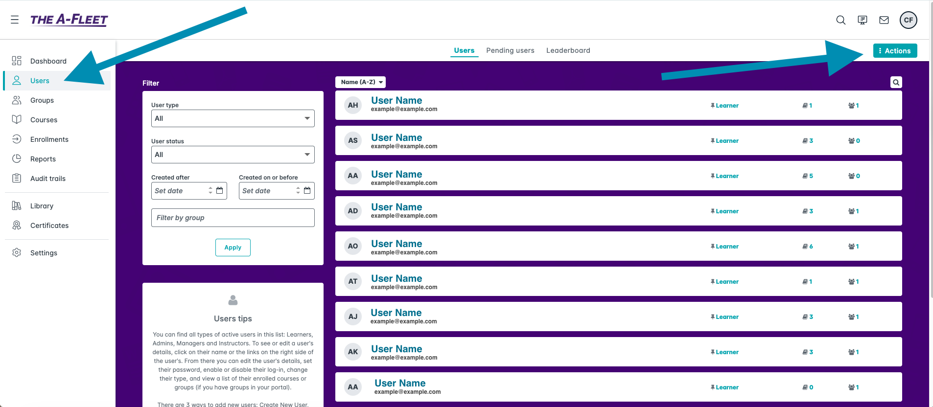 Open Users from the primary navigation menu.