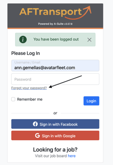 To reset your password to you portal, ether as a driver or an admin, go to your company’s log-in page and click "Forgot your password?"