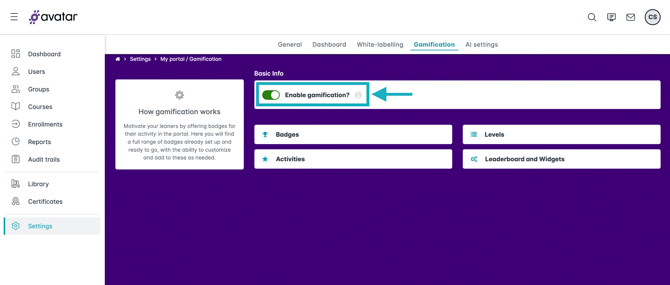 It is recommended you customize your Gamification settings (Badges, Levels, Activities, and Leaderboards) prior to enabling Gamification across your Portal. Once gamification is enabled, this will be live on your portal, and the “My Achievements” tab on the dashboard will be visible for your learners.