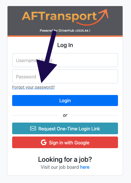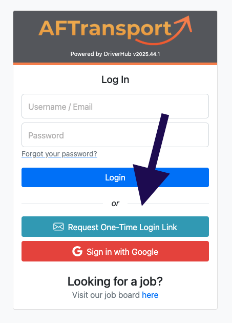 However, if they click the link after 72 hours, they are required to log in to their account in order to sign or submit items. If they have never logged in to their account or have forgotten their password, DriverHub can help them to log in using one of two options: