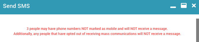 If any selected people do not have a valid mobile number, a warning will appear. You can continue and the message will send to those who are eligible.