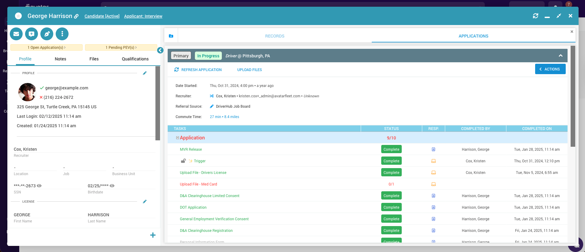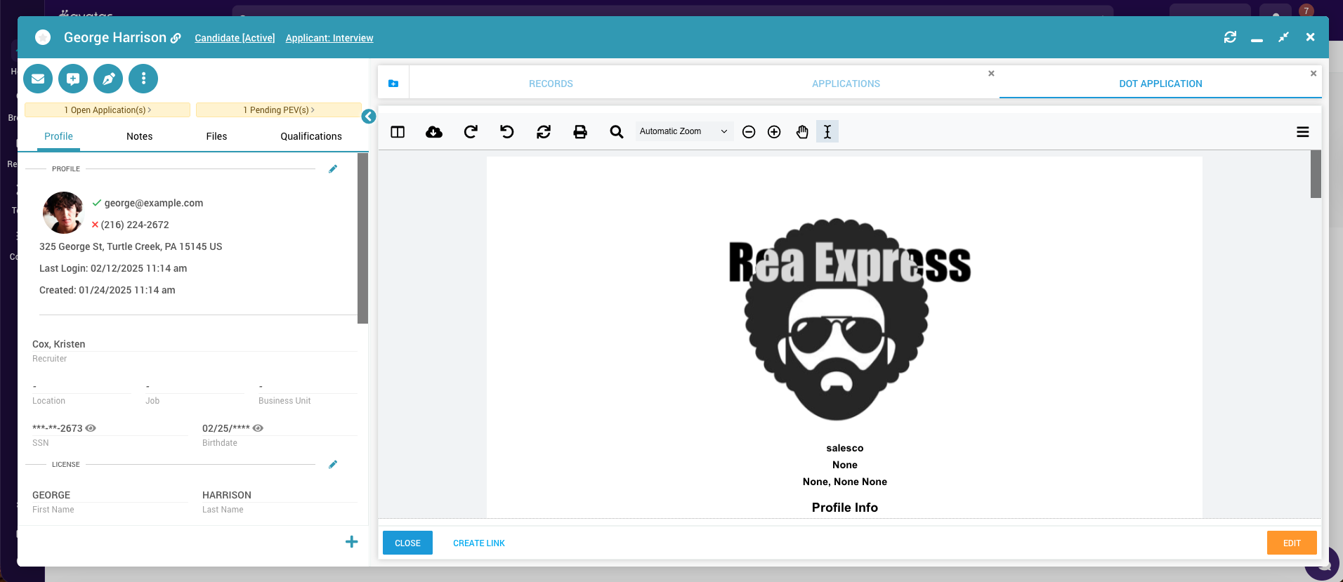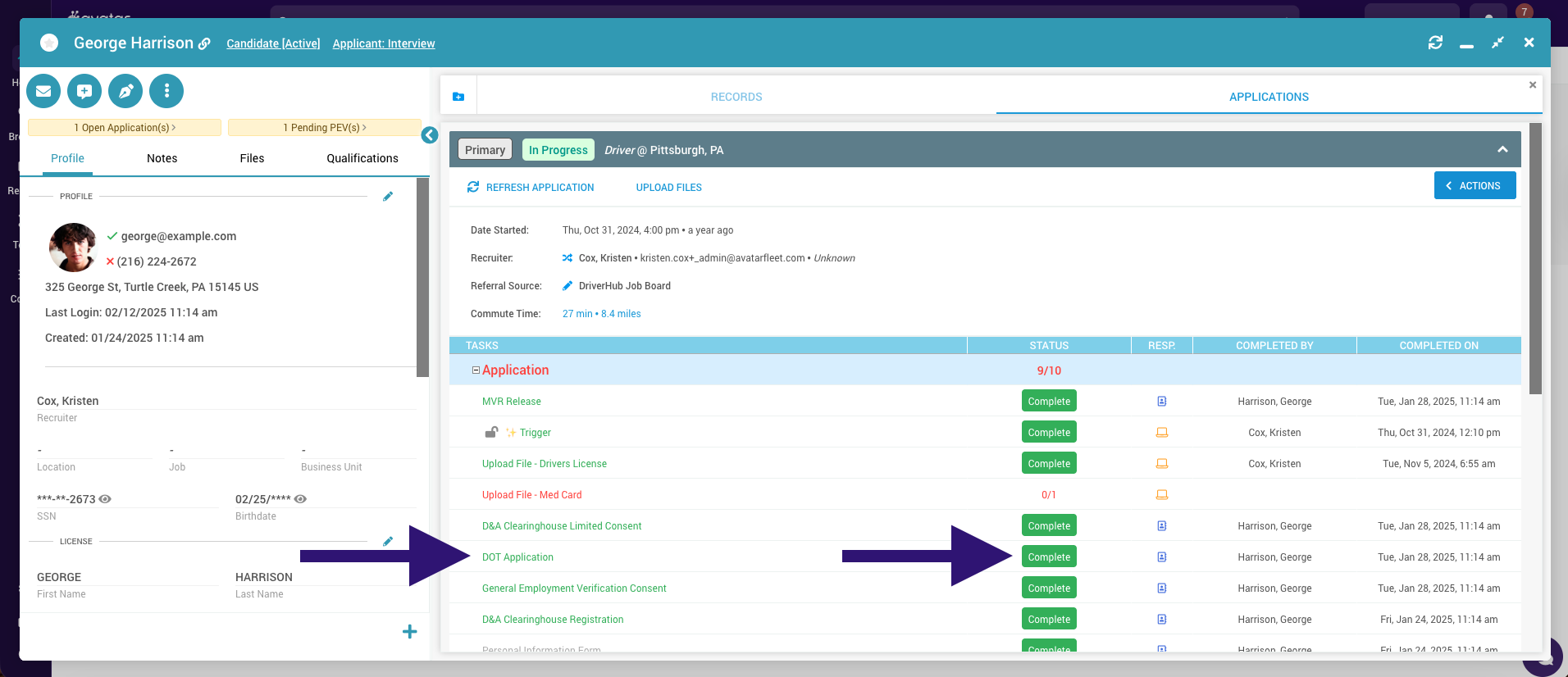 Open and review a candidate’s DOT or non-DOT application from their workflow.
