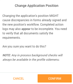 Changing the application’s position might cause discrepancies in forms already signed and in the new position’s workflow.