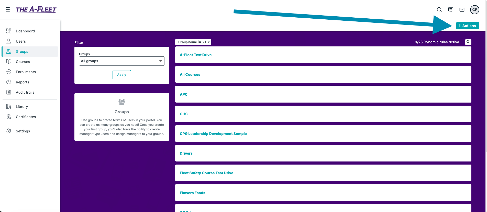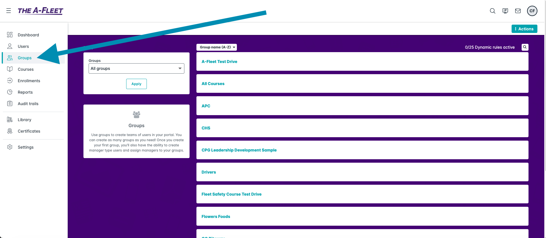 Groups let you organize learners and automatically assign courses to everyone in the group. Common examples include safety groups, accident groups, or job based groups. Once a learner is added to a group, any courses assigned to that group are automatically assigned to the learner.