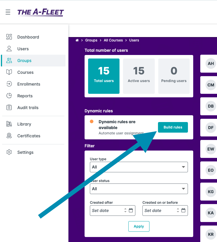 Dynamic rules automatically add learners to a group based on conditions you define.